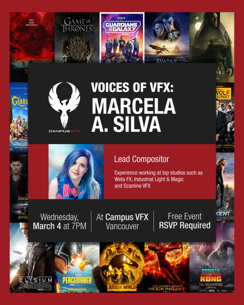 Join us for an evening with Marcela A. Silva, Lead and Senior Film Compositor, as she shares insights from her journey in the visual effects industry.